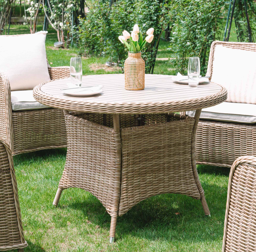 - 4-seater Round Wicker Rattan Dining Set is the perfect addition for those alfresco dinners in the garden.