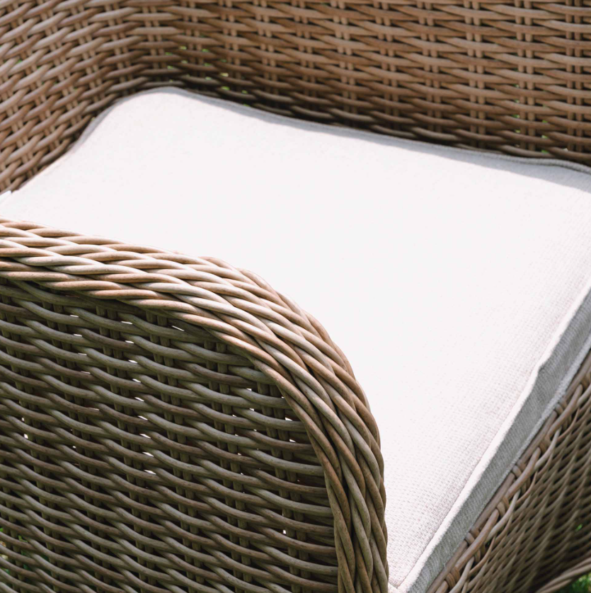 - Beige coloured 100% polyester seat cushions perfectly coordinate with the rattan