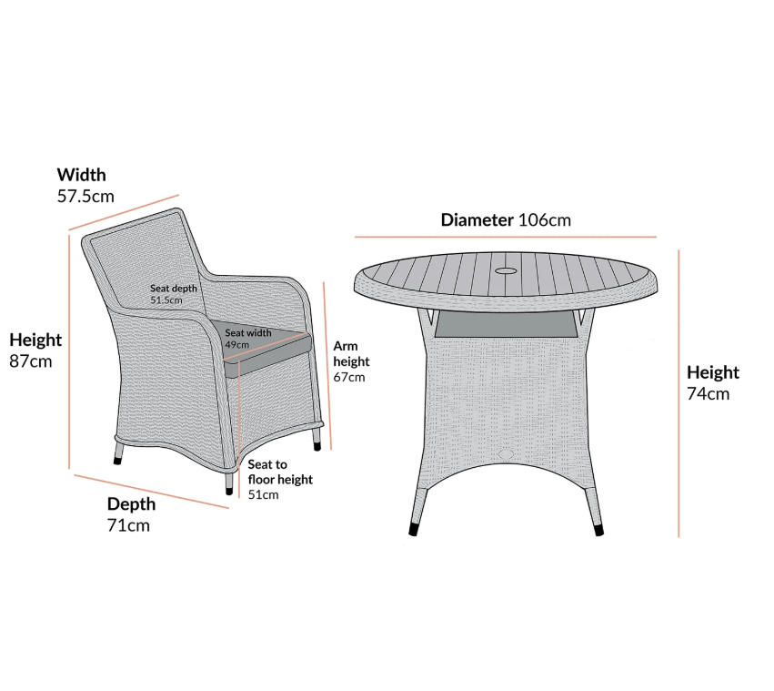 - The spacious round table has space to attach a parasol in the centre which will allow you to create the right amount of shade during those sunny days.