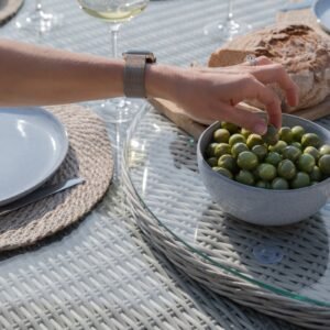A standout feature of this dining set is the integrated parasol hole, which accommodates an umbrella for added shade on sunny days. The set also includes a beautifully woven lazy Susan, perfect for effortlessly sharing food and drinks with your guests. Whether you’re hosting an intimate breakfast, a casual lunch, or a formal dinner, this dining set provides everything you need for memorable gatherings in the comfort of your garden or patio.