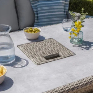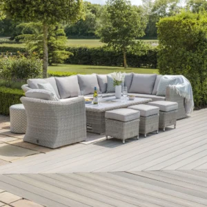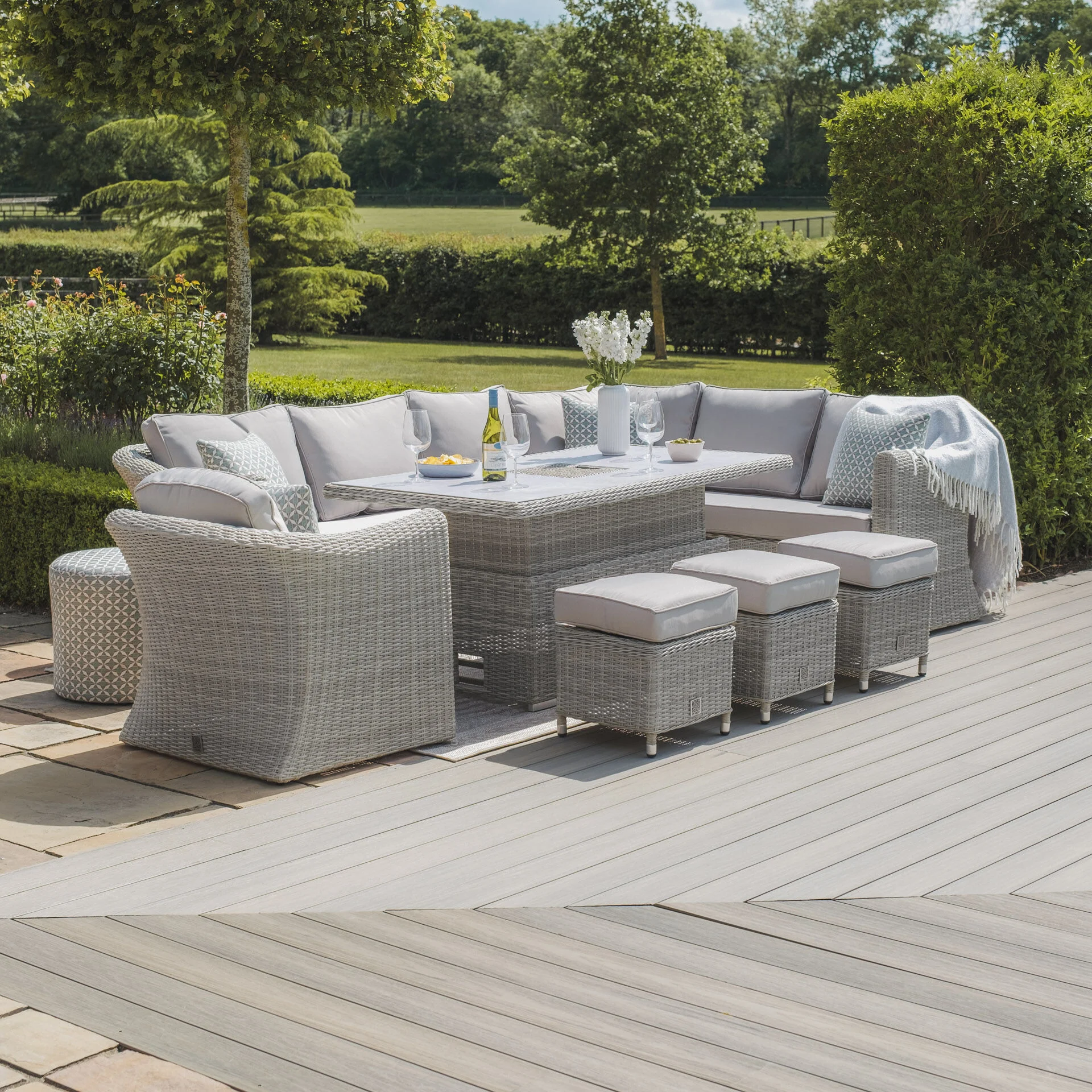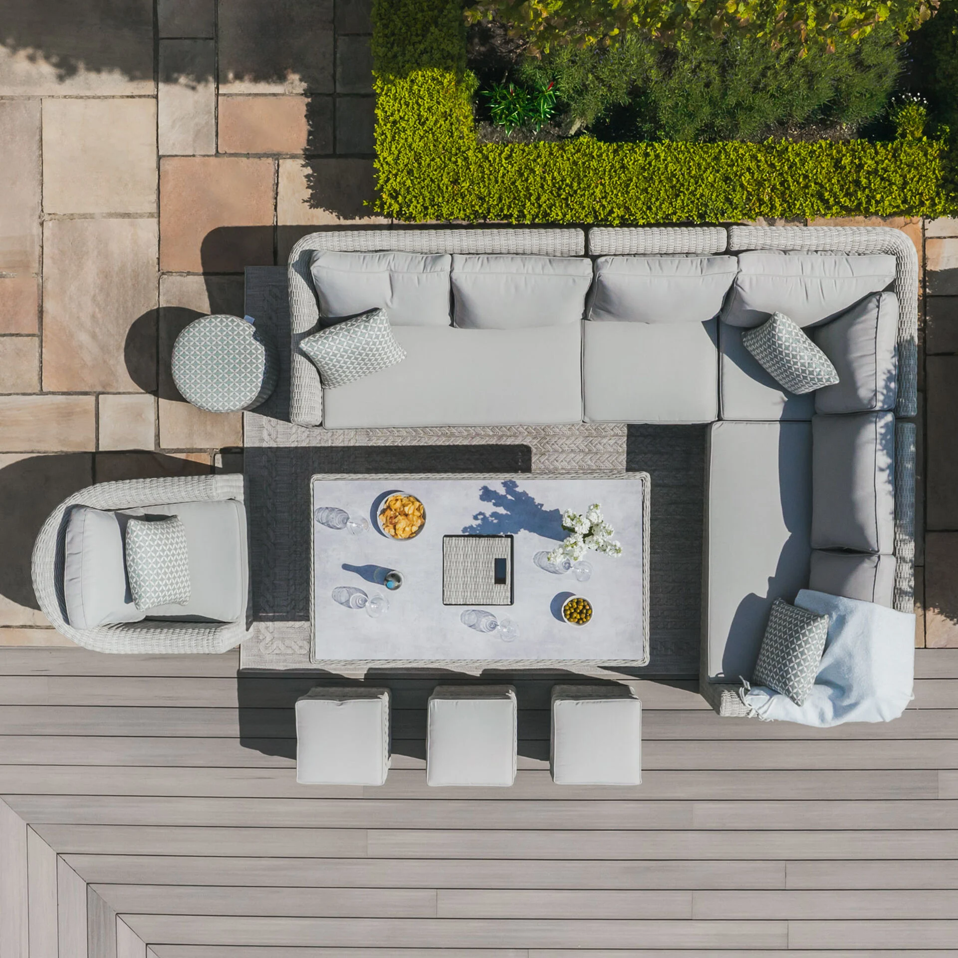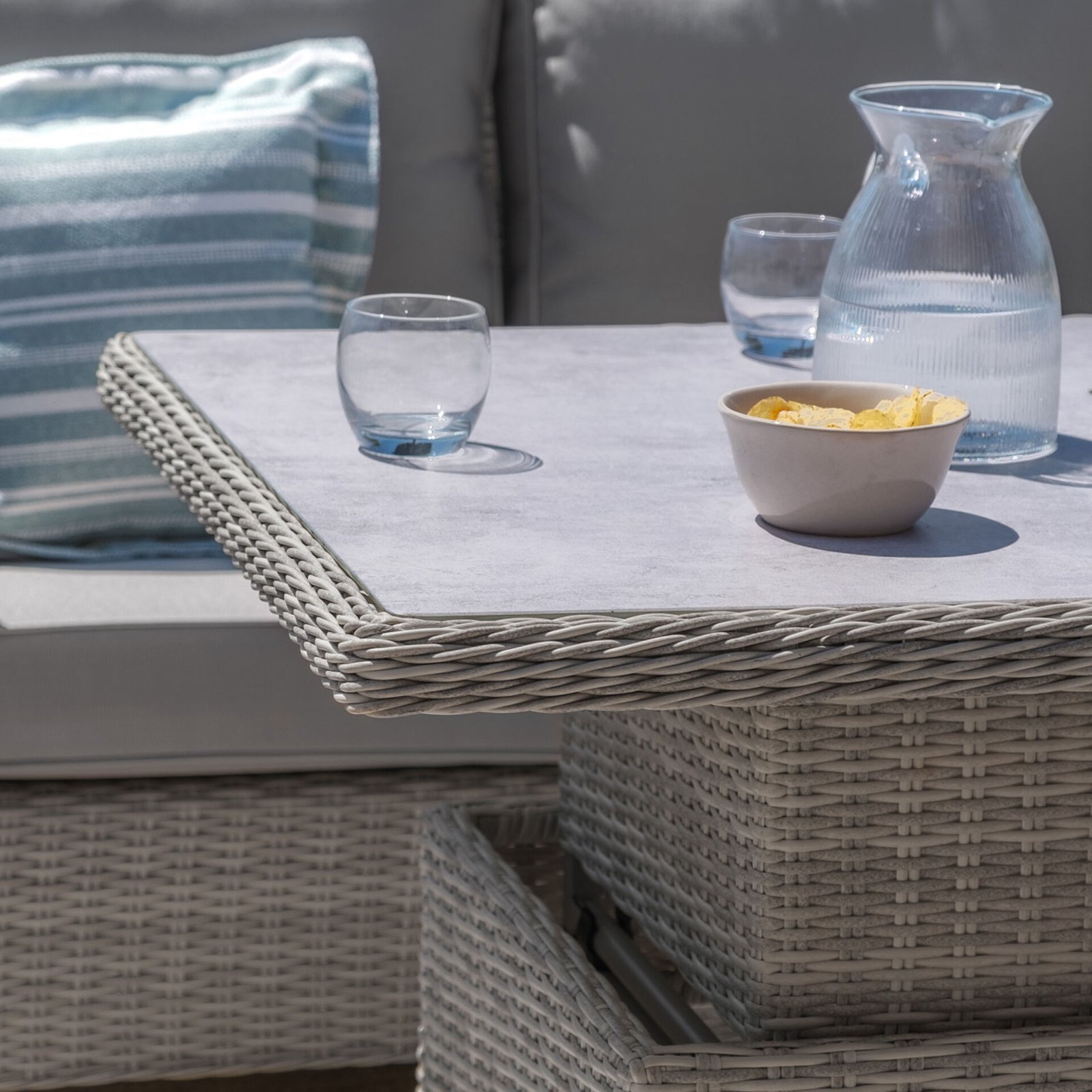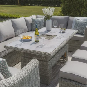 Oxford Deluxe Large Rattan Corner Dining Set with Rising Table & Armchair – Ceramic Glass