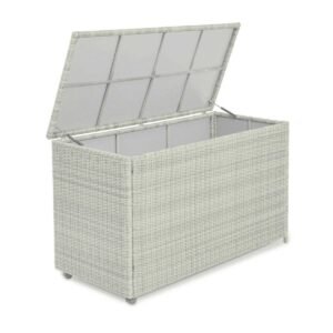 Practicality meets style with the Large Storage Box. This top-loading storage box is perfect for keeping your cushions and other garden accessories free from dirt and dust when not in use. With a solid protective top and woven rattan sides, it perfectly complements your furniture sets, while keeping your garden tidy.