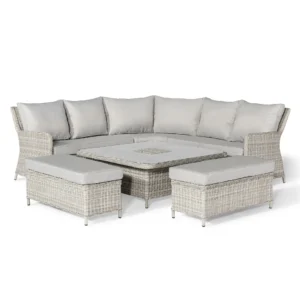 With its smooth lock-in and lock-out mechanism, the rising table adjusts effortlessly to suit your needs—from casual coffee breaks to full al fresco meals. The Oxford Royal Corner Bench Set is more than just garden furniture—it’s a lifestyle upgrade that brings style, practicality, and comfort together in one beautifully designed piece.