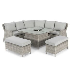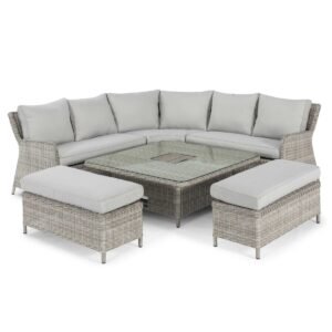 The Oxford Royal Corner Bench Set with Rising Table incorporates new improvements with tried and tested popular features of some of our best-selling sets. With generous benches to allow for extra seats, the convenient corner seating space optimises space in your garden. Finished off with the rising table, this set will perfectly complement any garden. The rising table will allow you to go from dining to lounging as it transforms from a dining table to coffee table with ease.