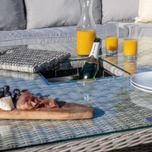 The ultimate set from the Oxford range, the Royal U Shape Sofa Set with Rising Table is our largest and most intimate Rattan set created yet. It incorporates our versatile rising table which allows you to transform from dining to lounging with ease. The generous U-Shaped Sofas and additional bench bring everyone together to socialise in maximum comfort. This statement set will effortlessly transform your outdoor living space.